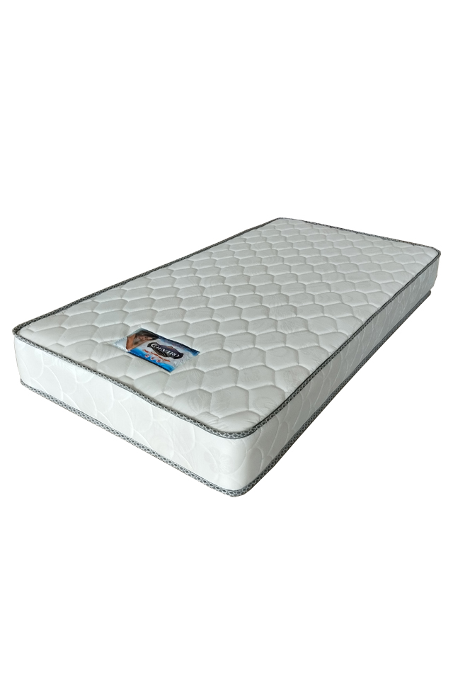Mattress spring bed brand Chevtro yang berwarna Putih polos ukuran single yang membuat kesan tampak mewah dan elegant